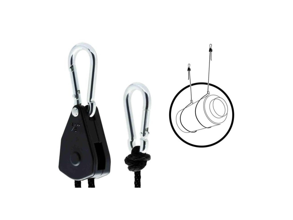 Garden HighPro Pro Hanger je dôležitým príslušenstvom pre inštaláciu a následné používanie umelého osvetlenia. Háčky vyrobené z odolného plastu zabezpečujú pohodlné a jednoduché upevnenie rastúcich komponentov. Závažie umožňuje nastaviť vzdialenosť svetla od kvetov a plodov až do výšky 105 cm. Dômyselný systém kladiek so západkou na pevnom lane, Rope Ratchet Pro Hanger, je vyhľadávanou pomôckou pre praktických pestovateľov v interiéri.