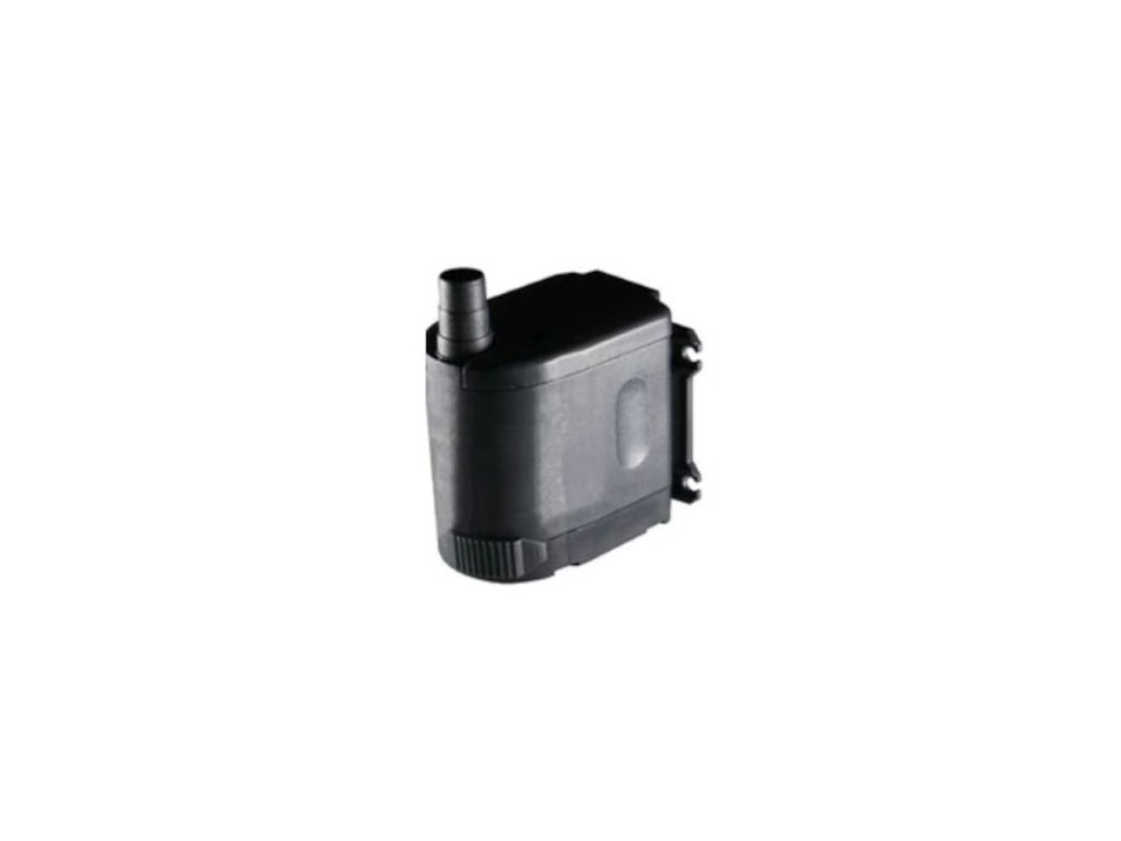 Ponorné cirkulačné čerpadlo – výkon 400 l/h – výtlak 0,7 m – príkon 5 W. Rozmery 63 x 83 x 73 mm. Konektor na hadicu 12 mm.